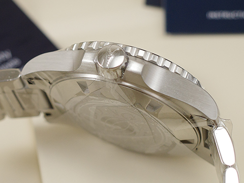 不鏽鋼材質錶殼錶鍊帶、摺疊扣、旋入式錶冠 / 單向旋轉黑色陶瓷錶圈 / 黑色面盤、夜光時標 / 藍寶石水晶玻璃 |