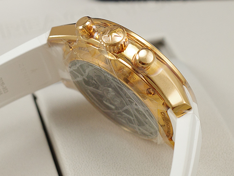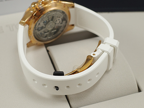 18K玫瑰金錶殼、折疊扣搭配整合式白色FKM橡膠錶帶 / 柱狀時標 / 藍寶石水晶玻璃 |