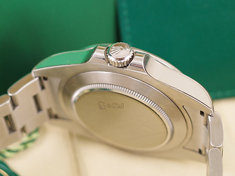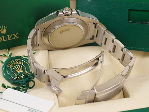ROLEX原廠Cal.3187自動上鍊機芯 / 時、分、秒大三針指示 / 3點鐘位置放大日期窗顯示 / 可獨立校調12小時指針 / GMT兩地時間功能 / 防水100米 |