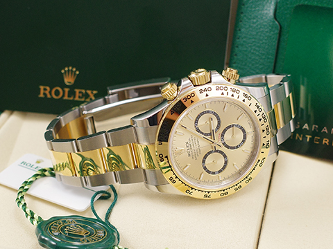 ROLEX 勞力士 DAYTONA 迪通拿 126503 賽車錶 宇宙計時型 半金 金色面盤黑色計時盤外圈 計時碼表 2025保單