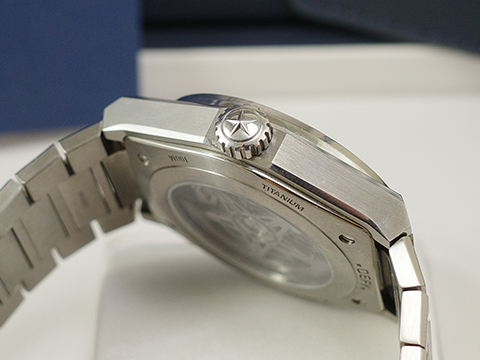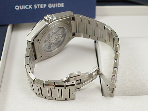 材質: 鈦金屬錶殼及折疊扣 / 原廠金屬鍊帶 / 藍寶石水晶玻璃鏡面 /