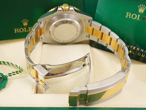 2019年勞力士推出Oyster Perpetual Sea-Dweller蠔式恒動海使型特別亮眼,推出蠔式鋼與18ct黃金的組合「黃金鋼款」,值得注意的是,這是Sea-Dweller系列首次採用18ct黃金材質。 金既高貴又珍貴,富光澤且穩定。鋼,牢不可破,堅固無比,可堪信賴。兩者特質完美地彰顯了勞力士腕錶的優雅氣質與卓越性能,早在1933年將「Rolesor金鋼」註冊為商標,成為勞力士腕錶的一個標誌特色。新款 Sea-Dweller黃金鋼款,外圈、錶冠與錶帶中間鍊節以18ct黃金打造,錶殼及錶帶兩側鍊節則以蠔式鋼打造。新款勞力士Sea-Dweller配備單向旋轉外圈及60分鐘刻度黑色Cerachrom陶質字圈,讓潛水員可掌握自己的潛水和減壓時間,確保安全。 一如2017年款的改變,2019年的Sea-Dweller配備3235機芯,3點鐘位置設有小窗凸透鏡,方便讀取日曆。不一樣的地方在於面盤上的”Sea-Dweller”字樣,不用紅色改用黃色鐫刻,正巧與腕錶的18ct黃金相互輝映。搭配的蠔式錶帶加入專利的Rolex Glidelock延展系統,方便在厚達3毫米的潛水服外佩戴。
