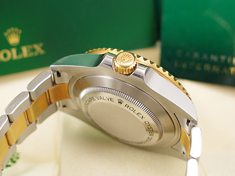 18K黃金+904L精鋼材質錶殼、錶鍊帶及摺疊帶扣 / 藍色夜光指針及時標 / 潛水刻度黑色單向旋轉陶瓷錶圈 / 藍寶石水晶玻璃鏡面 |