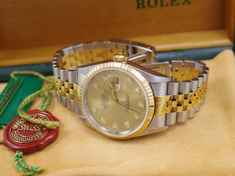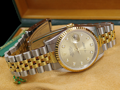 | ROLEX 勞力士 DATEJUST 16233 16233G 經典蠔式日誌型 自動上鍊 黃K金半金款 原鑲包檯十鑽面 台灣公司貨 T字頭 |