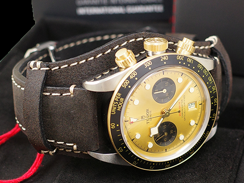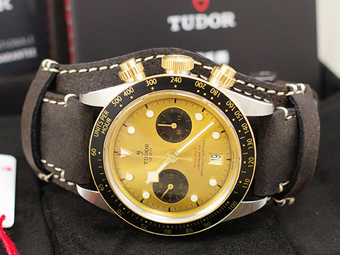 TUDOR 帝舵 Black Bay Chrono S&G 碧灣 余文樂配色 金色熊貓面盤 79363N-0008 計時碼錶 香檳色配黑色計時盤 半金款 79363 MT5813自製機芯 棕色皮錶款 自動上鍊 2025保單