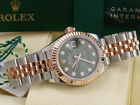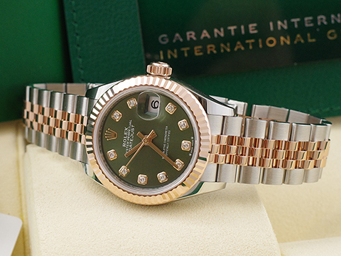 | ROLEX 勞力士 Lady Date-Just 279171 279171-0027 鑽石時標 玫瑰金 半金 橄欖綠面 自動上鍊 2026保單 |