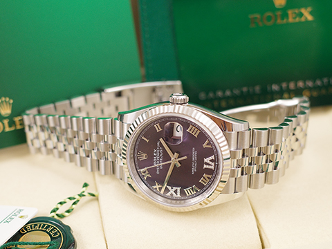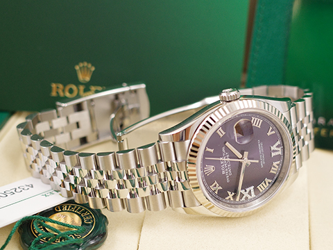 | ROLEX 勞力士 Datejust Jubilee 126234 126234-0021 蠔式日誌型 五格鏈節紀念型錶帶款 茄紫色面盤 原廠VI、IX鑲鑽 羅馬時標 自動上鍊 2026保單 |